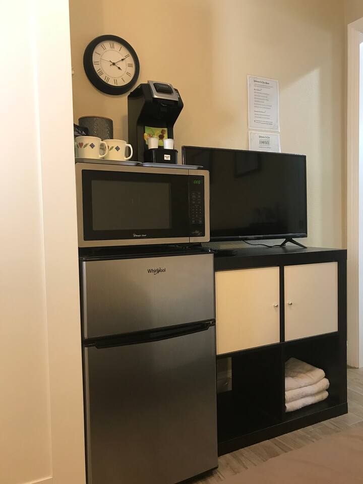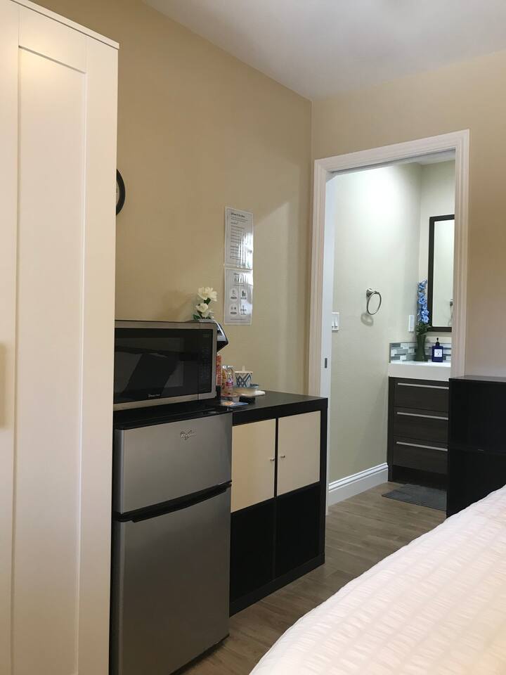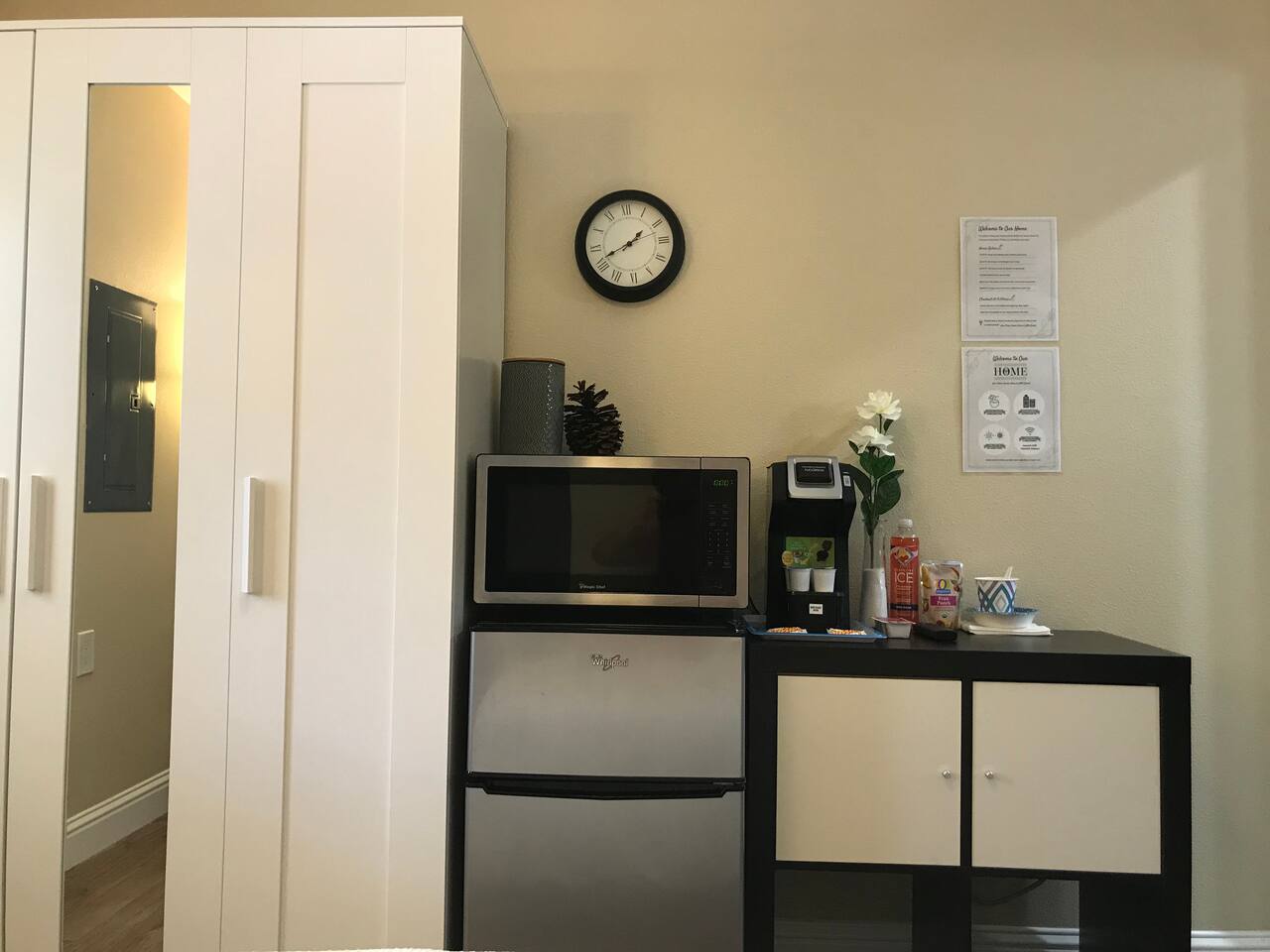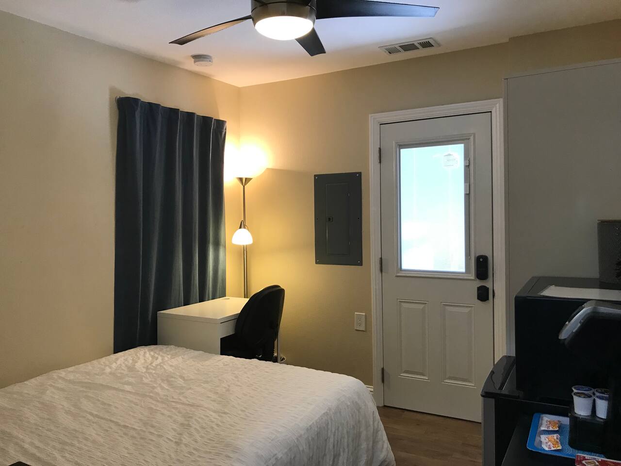 Welcome to our renovated guest suite (it is attached to the main house) facing our amazing courtyard surrounded by fruit trees. The measurement of the suite is 14’10” x 9’5”, but it has its own private entrance through the courtyard (nothing is shared), luxurious oversized bathroom with travertine tile, Sealy Posturepedic Queen size bed, workspace, wardrobe, AC, brand new smart TV, fast mesh network WiFi (~120Mbps), Whole House Premium Water (drinkable water drink any tap), fridge, microwave, K-cup / coffee brewer, water filter pitcher, etc. Your bathroom is fully equipped with fresh towels and toiletries for your use. While we do vacuum and mop the floor every single time, but we don’t require guests / cleaning crews to take off their shoes while in the suite. Therefore, we don’t recommend going barefoot in the suite. You will be able to self check-in, but please confirm your reservation and checkin instruction beforehand, especially when you plan to checkin really late - we might be at sleep. An unique virtual key will be generated automatically for the duration of your stay. The key will be valid starting at 3:00pm of the check-in date and expired at 11:00am on the check-out date. To ensure we have a safe and secure place for everyone staying with us. Your door will be automatically locked in 30 seconds. The property is equipped with video surveillance 24/7. Make sure to put down the correct number of guest who will be staying with you in the reservation and informed us through Airbnb app who will be visiting you during your stay in advanced. Any unsolicited visitors will be considered trespassing, thanks for your understanding!