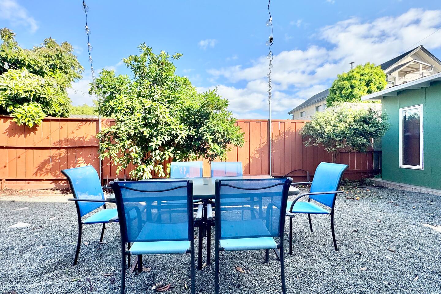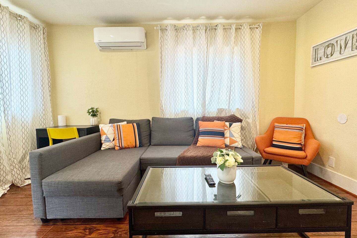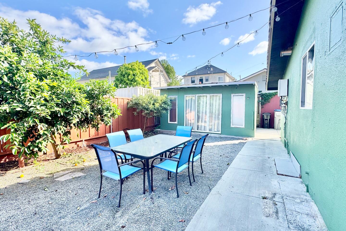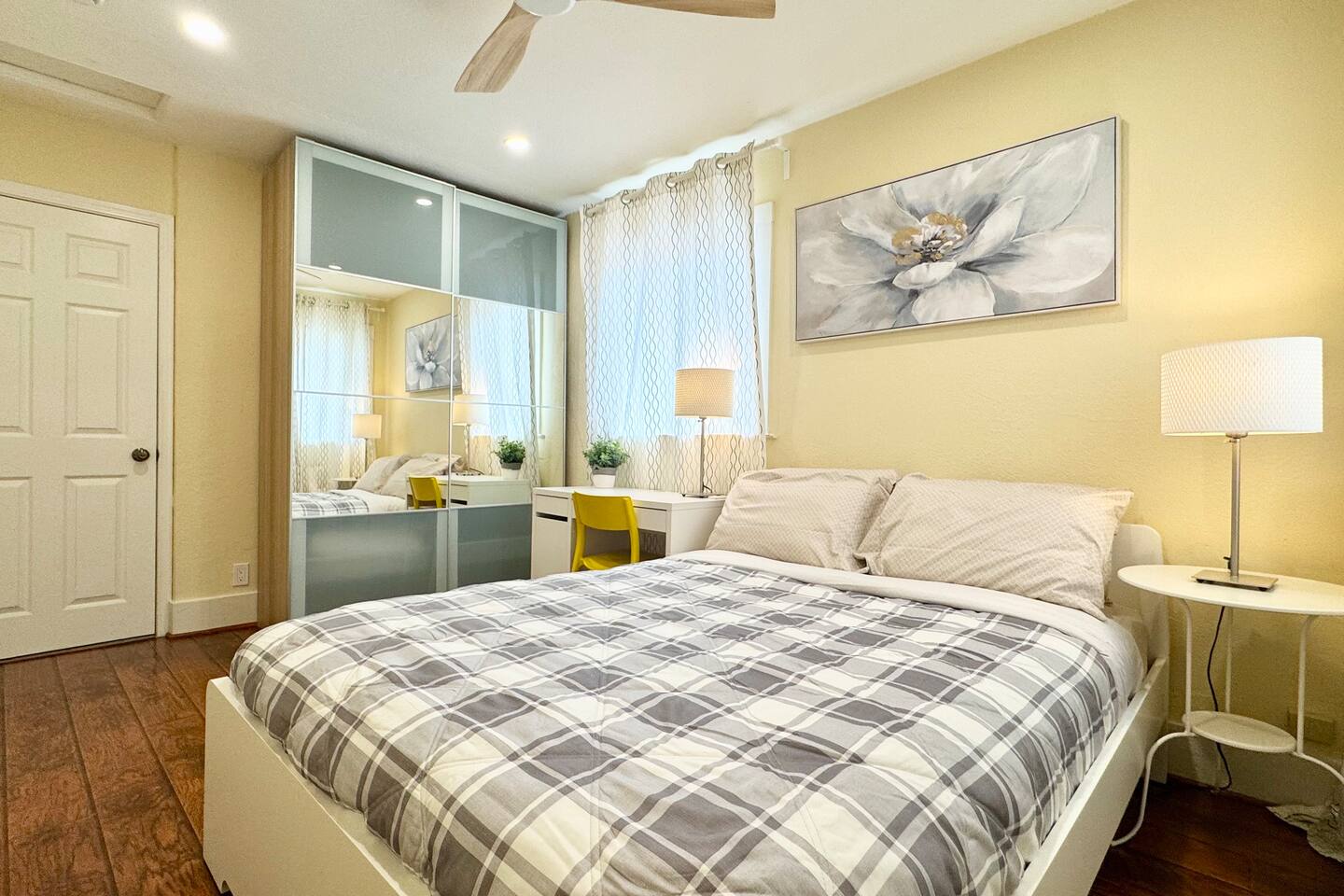 Welcome to our sunny and stylish 2-bedroom bungalow in the heart of Silicon Valley—perfect for relaxing, working, or exploring San Jose. Enjoy modern amenities, a private backyard, and a central location just minutes from top attractions. What you’ll love: ◉ Fully stocked kitchen ◉ Cozy living room with smart TV ◉ Blazing-fast WiFi 6 (mesh network) ◉ Dedicated laundry room ◉ Queen bed (primary bedroom) ◉ Full bed (guest bedroom) ◉ Sofa bed (full size) for extra guests Outdoor features: ◉ Private backyard with fruit trees (kumquat, lime, pomegranate) ◉ Dining table for six ◉ Cozy string lights for evening ambiance Extras included: ◉ Fresh linens, towels & toiletries ◉ Self check-in via smart lock ◉ Dedicated driveway parking ◉ Professional cleaning before each stay ◉ 24/7 exterior video surveillance Please note: The home has one mini-split AC in the living room, with ceiling fans in the living area and both bedrooms. Each bedroom also includes a smart wall-mounted heater. We use the backyard shed to store supplies and may access it occasionally—always with respect to your space and privacy.