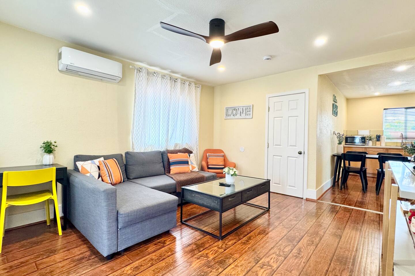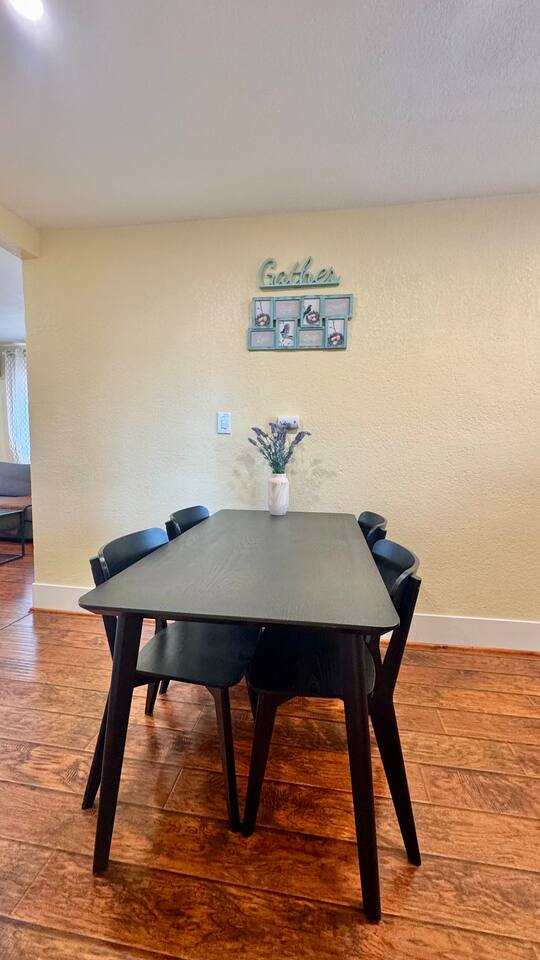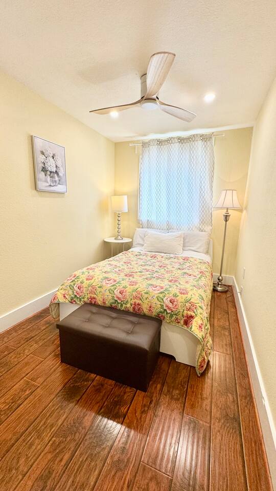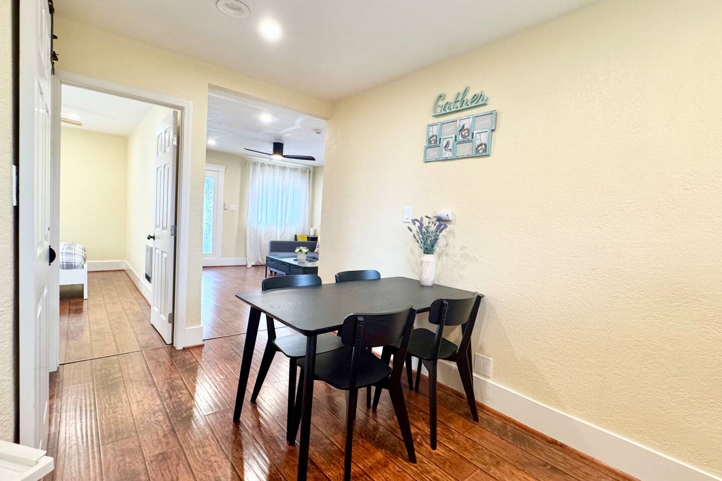 Welcome to our sunny and stylish 2-bedroom bungalow in the heart of Silicon Valley—perfect for relaxing, working, or exploring San Jose. Enjoy modern amenities, a private backyard, and a central location just minutes from top attractions. What you’ll love: ◉ Fully stocked kitchen ◉ Cozy living room with smart TV ◉ Blazing-fast WiFi 6 (mesh network) ◉ Dedicated laundry room ◉ Queen bed (primary bedroom) ◉ Full bed (guest bedroom) ◉ Sofa bed (full size) for extra guests Outdoor features: ◉ Private backyard with fruit trees (kumquat, lime, pomegranate) ◉ Dining table for six ◉ Cozy string lights for evening ambiance Extras included: ◉ Fresh linens, towels & toiletries ◉ Self check-in via smart lock ◉ Dedicated driveway parking ◉ Professional cleaning before each stay ◉ 24/7 exterior video surveillance Please note: The home has one mini-split AC in the living room, with ceiling fans in the living area and both bedrooms. Each bedroom also includes a smart wall-mounted heater. We use the backyard shed to store supplies and may access it occasionally—always with respect to your space and privacy.