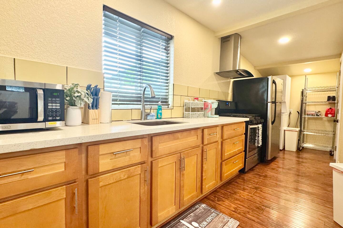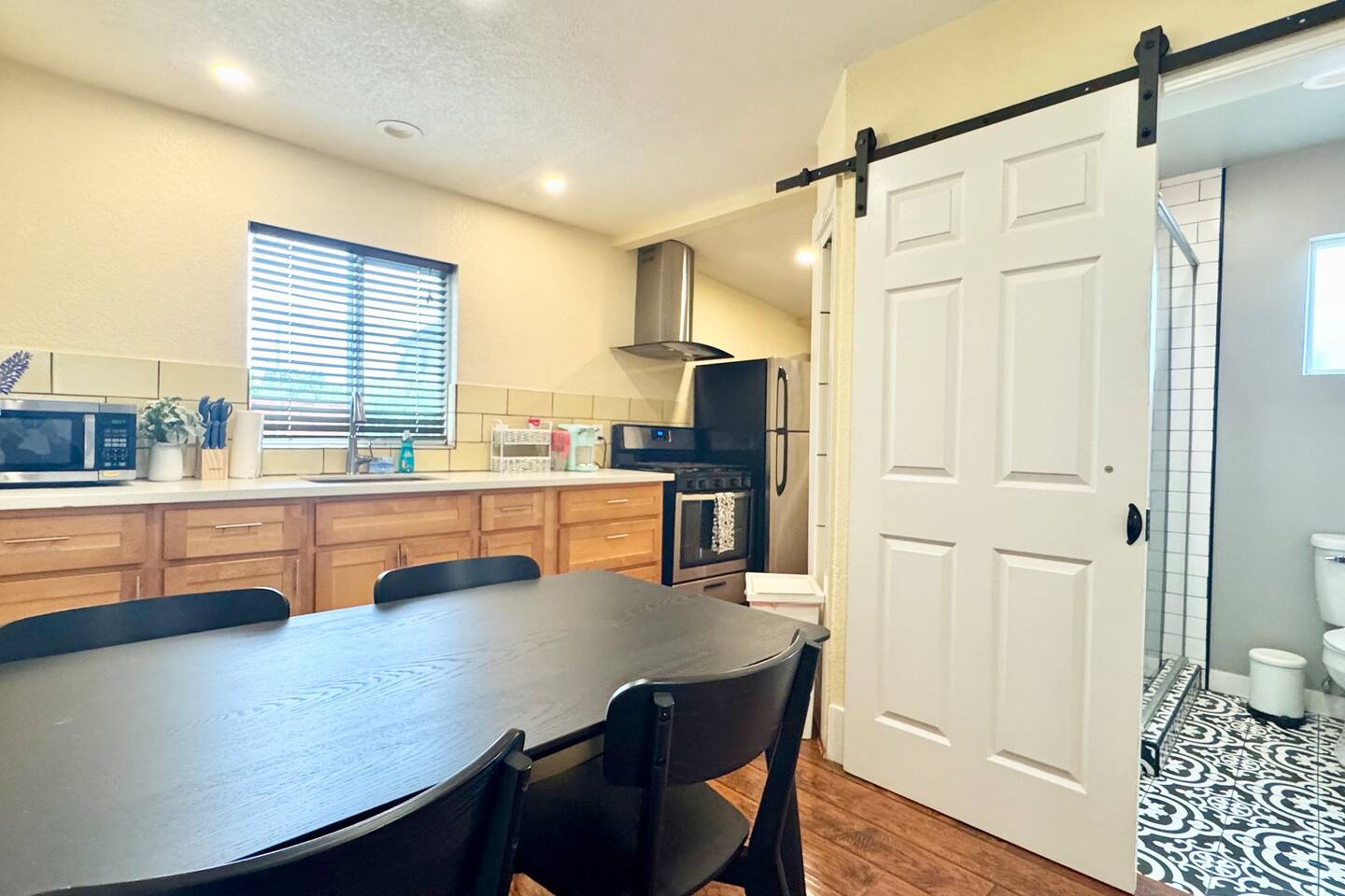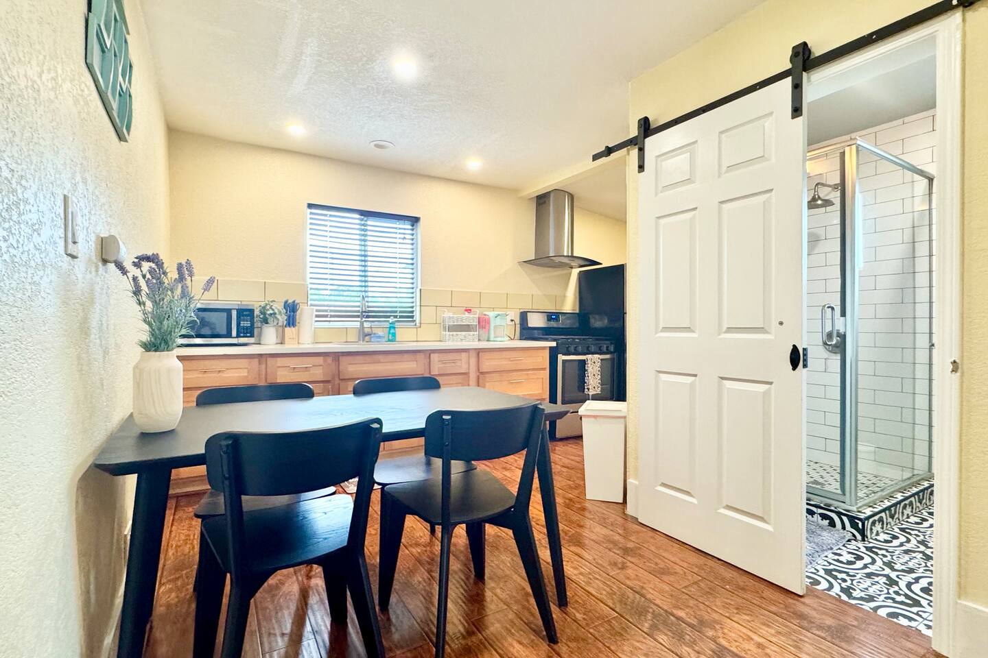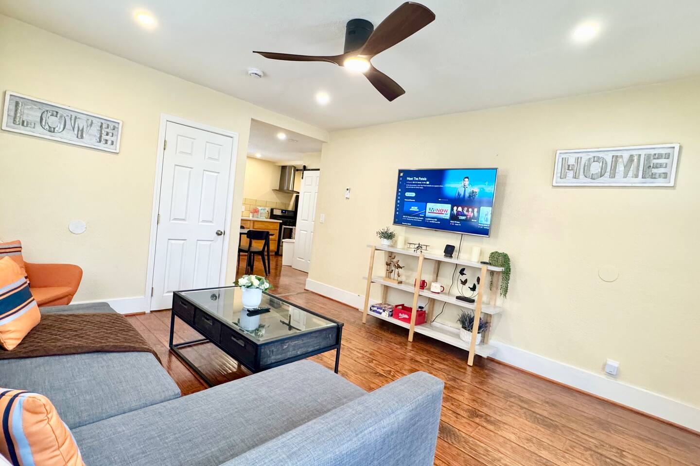 Welcome to our sunny and stylish 2-bedroom bungalow in the heart of Silicon Valley—perfect for relaxing, working, or exploring San Jose. Enjoy modern amenities, a private backyard, and a central location just minutes from top attractions. What you’ll love: ◉ Fully stocked kitchen ◉ Cozy living room with smart TV ◉ Blazing-fast WiFi 6 (mesh network) ◉ Dedicated laundry room ◉ Queen bed (primary bedroom) ◉ Full bed (guest bedroom) ◉ Sofa bed (full size) for extra guests Outdoor features: ◉ Private backyard with fruit trees (kumquat, lime, pomegranate) ◉ Dining table for six ◉ Cozy string lights for evening ambiance Extras included: ◉ Fresh linens, towels & toiletries ◉ Self check-in via smart lock ◉ Dedicated driveway parking ◉ Professional cleaning before each stay ◉ 24/7 exterior video surveillance Please note: The home has one mini-split AC in the living room, with ceiling fans in the living area and both bedrooms. Each bedroom also includes a smart wall-mounted heater. We use the backyard shed to store supplies and may access it occasionally—always with respect to your space and privacy.