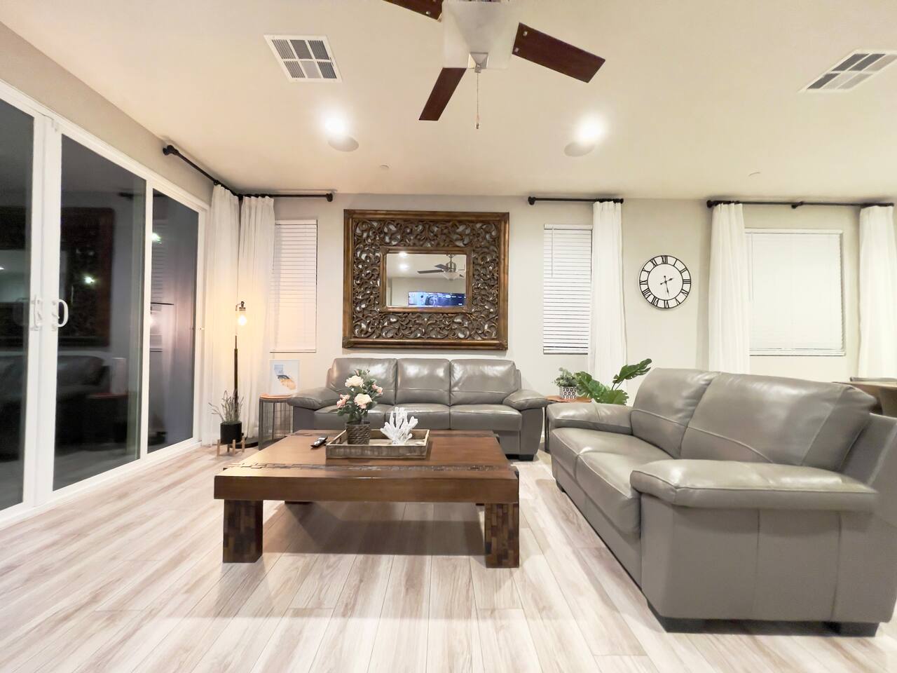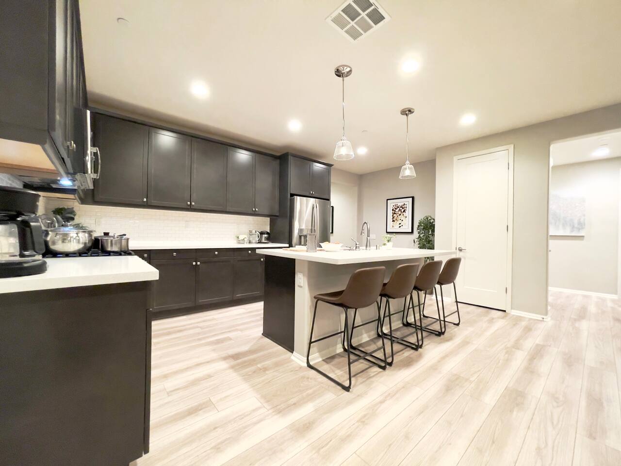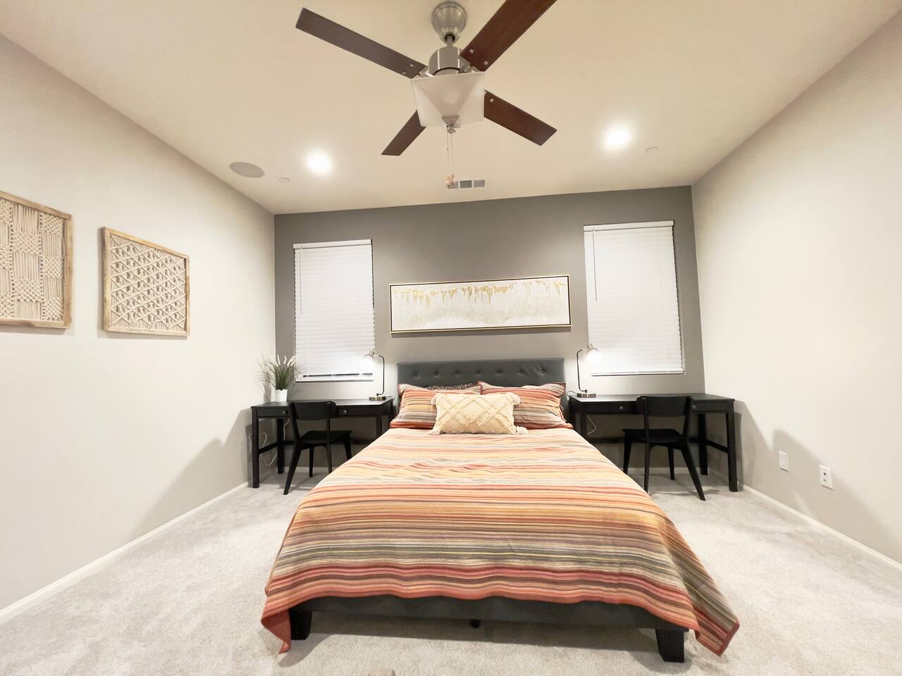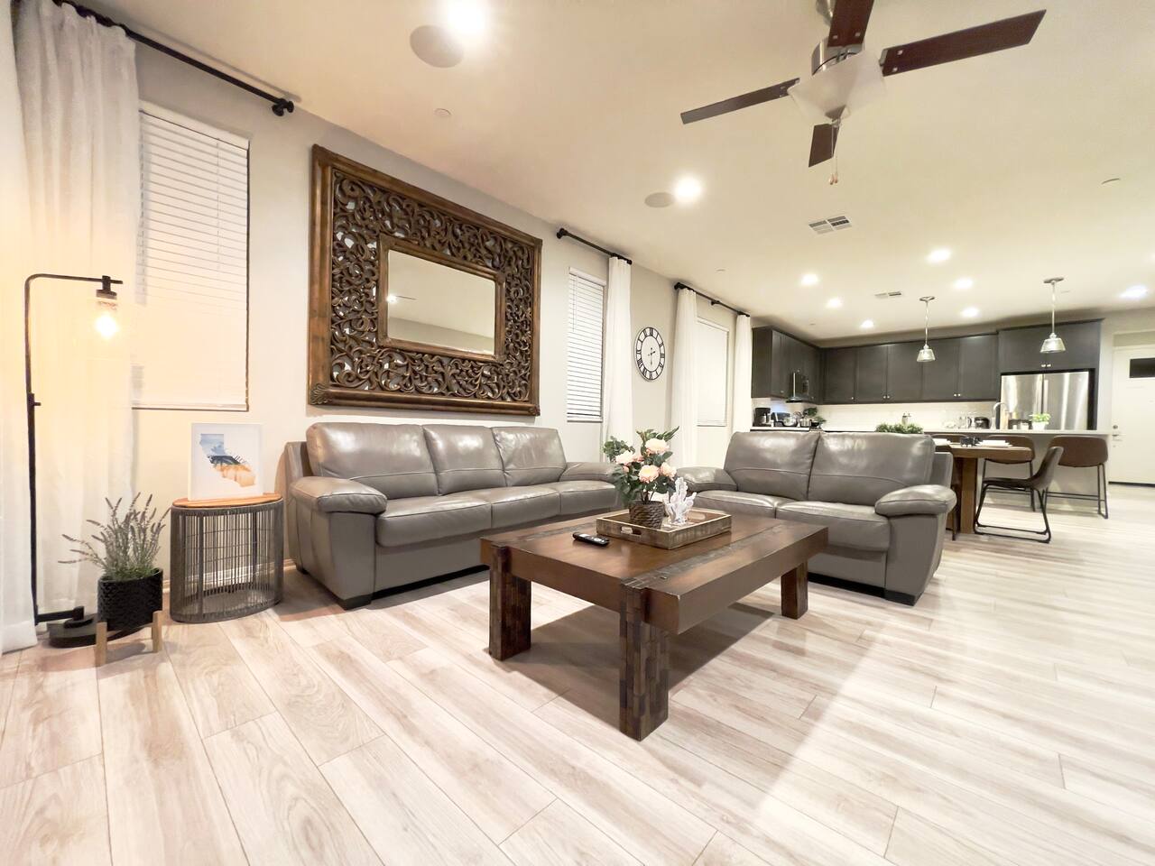 Our 4BR/2BA home was Richmond American's model home till end of 2022. It offers a fully stocked kitchen with brand new appliances, mid-century modern furnishings, Australian imported leather sofa bed, AC, laundry room, smart TV, fireplace, fast mesh network WiFi, bamboo pillows, day bed with trundle, LoveSac bean bag, professionally landscaped yard, extended patio dinning, bowflex gym, parking garage, etc. The house will be professionally cleaned before each stay with clean linens, toiletries, and everything else you'll need for a comfortable stay. To ensure we have a safe and secure place for everyone staying with us. The property is equipped with video surveillance 24/7 around the perimeters of the house. Make sure to put down the correct number of guest who will be staying with you in the reservation and informed us through Airbnb app if there are any changes in advanced.