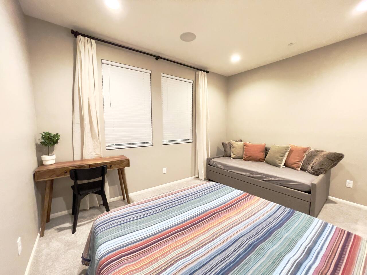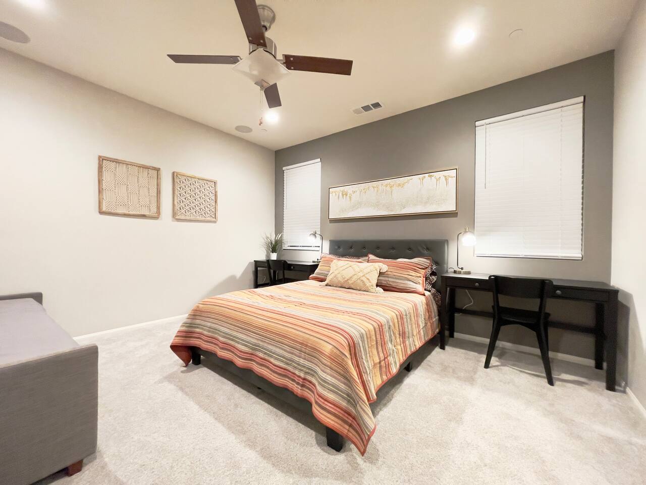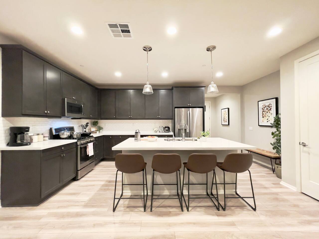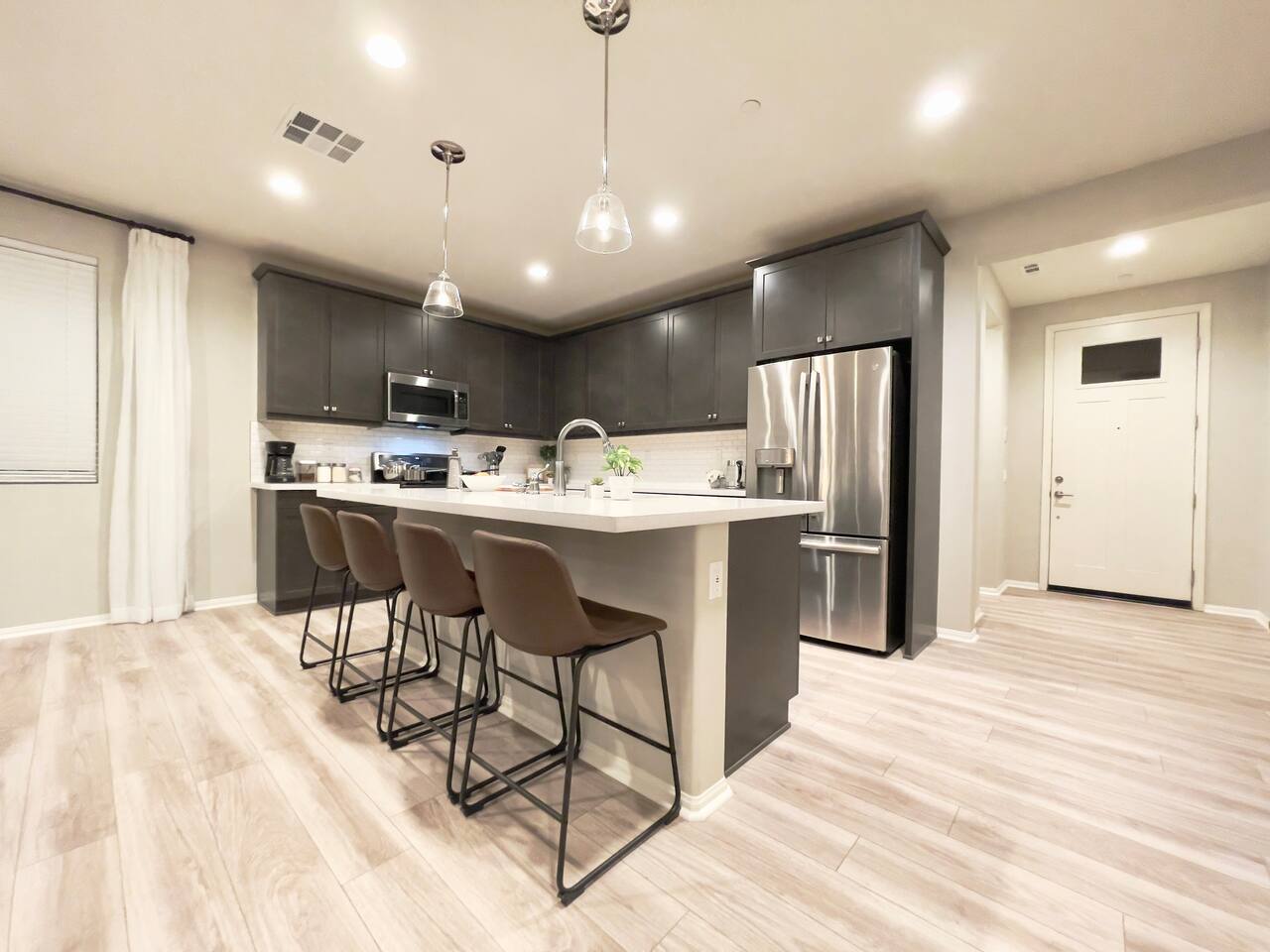 Our 4BR/2BA home was Richmond American's model home till end of 2022. It offers a fully stocked kitchen with brand new appliances, mid-century modern furnishings, Australian imported leather sofa bed, AC, laundry room, smart TV, fireplace, fast mesh network WiFi, bamboo pillows, day bed with trundle, LoveSac bean bag, professionally landscaped yard, extended patio dinning, bowflex gym, parking garage, etc. The house will be professionally cleaned before each stay with clean linens, toiletries, and everything else you'll need for a comfortable stay. To ensure we have a safe and secure place for everyone staying with us. The property is equipped with video surveillance 24/7 around the perimeters of the house. Make sure to put down the correct number of guest who will be staying with you in the reservation and informed us through Airbnb app if there are any changes in advanced.