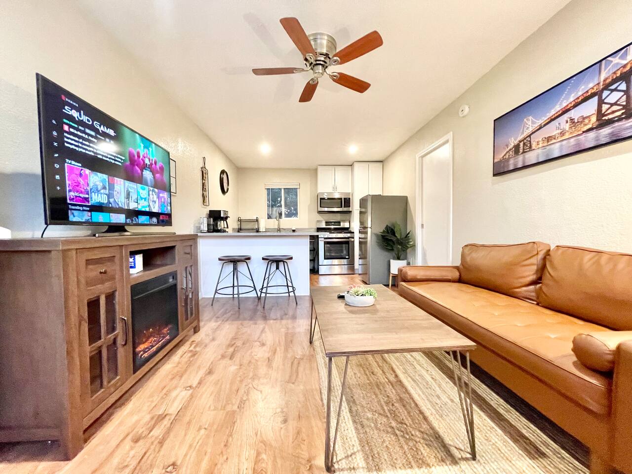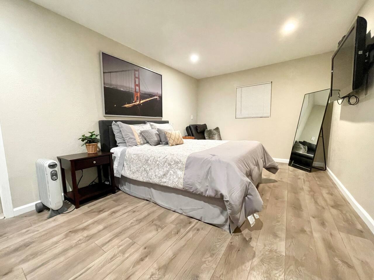 Our brand new guest house offers a fully stocked kitchen, mid-century modern furnishings, portable AC, laundry room with brand new Samsung washer an dryer, luxurious bathroom, full length mirror, dedicated office, smart TV in every room, fast mesh network WiFi (~100Mbps), comfortable memory foam queen bed and sofa lounger (Serta convertible) double as additional bed, etc. The extra foldable bed with sleeping pad in the closet to accommodate additional guest if needed. The house will be professionally cleaned before each stay with clean linens, toiletries, and everything else you'll need for a comfortable stay. You will be able to self check-in with smart lock, but please confirm your reservation and checkin instruction and ask any question beforehand, especially when you plan to checkin really late - we might be at sleep. An unique virtual key will be generated automatically for the duration of your stay. The key will be valid starting at 4:00pm of the check-in date and expired at 12:00am on the check-out date. To ensure we have a safe and secure place for everyone staying with us. Your door will be automatically locked in 30 seconds. The property is equipped with video surveillance 24/7 around the perimeters of the house. Make sure to put down the correct number of guest who will be staying with you in the reservation and informed us through Airbnb app if there are any changes in advanced.