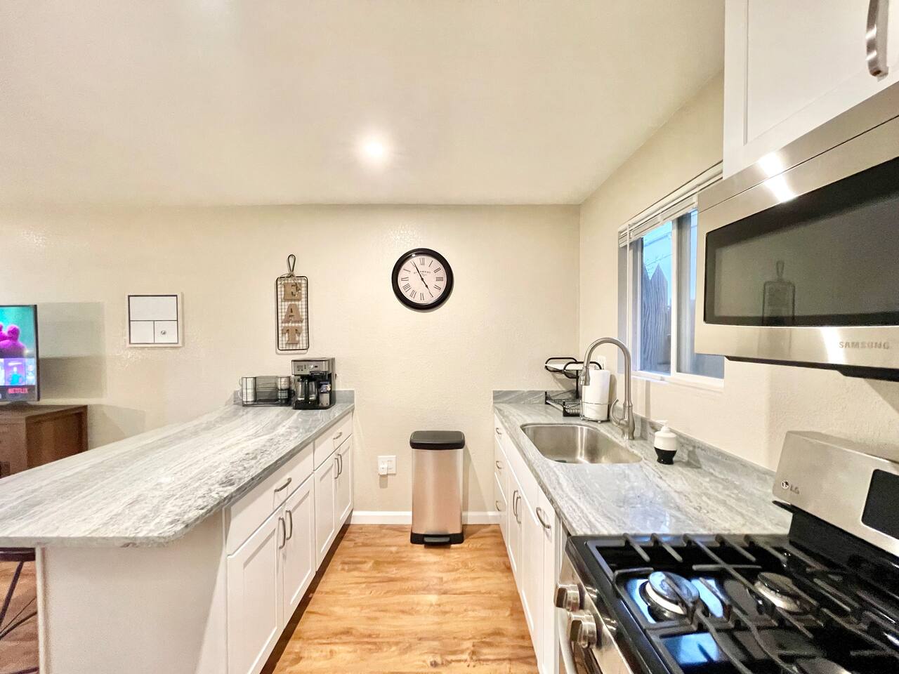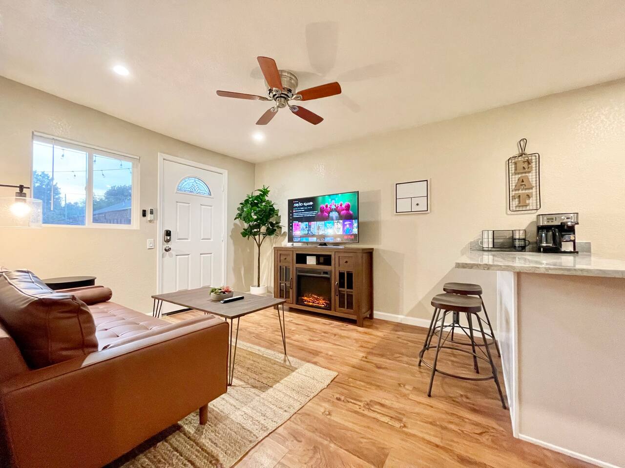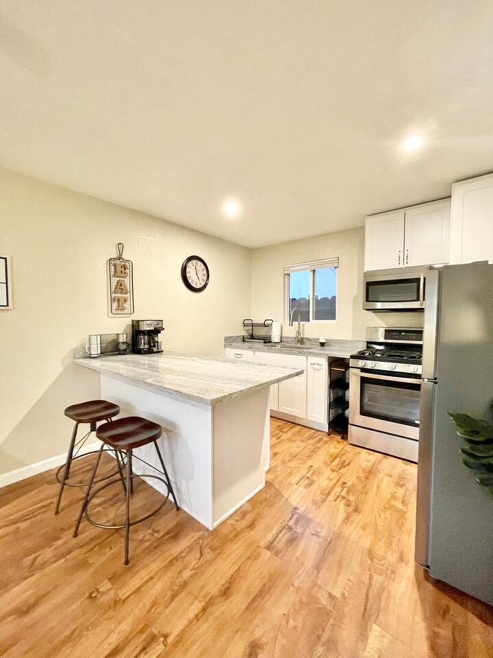 For our pet owners, please bring your pets for a walk instead of potty in the common courtyard. The pee will kills the plants’ roots, we also don’t want to have other guests accidentally step into the poop. To be a good neighbor, please pick up after them whenever they go. We are proud of creating memories for our guests, so you are welcome to host a small get together if you let us know in advanced. Since all of our neighbors have our contact info, please messaged us exactly how many people will be visiting and staying in advanced and respect the quiet hours between 10:00pm to 8:00am. Additionally, please clean up and take away the trash after to prevent overflowing our trash can. We reserve the right to charge additional cleaning fee or excess trash if we have too much trash too early (Thurs is our trash pick up), we need to physically take the trash out to dump and pay additional fees! DO NOT put trash in the recycle bin, they will refuse to pick up our trash! You will be sharing the backyard with guests from 2 other units which are completely detached house. However, you will barely notice if there is anyone there since each unit has a completely separate entrance, address and parking. Please DO NOT PARK on the driveway, it is reserved for the other 2 units. There are plenty of street parking available, especially around the corner of Illinois Ave and Jerome St. Since we are very close to the train track, occasionally we can hear the train if our windows and doors are opened :)