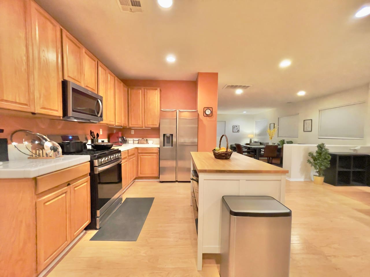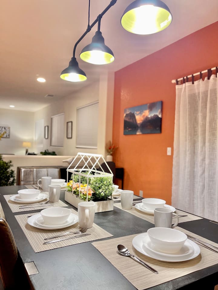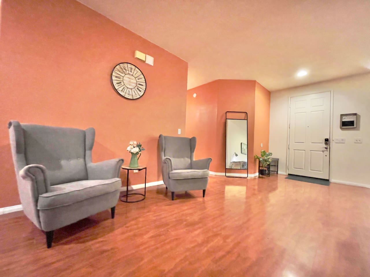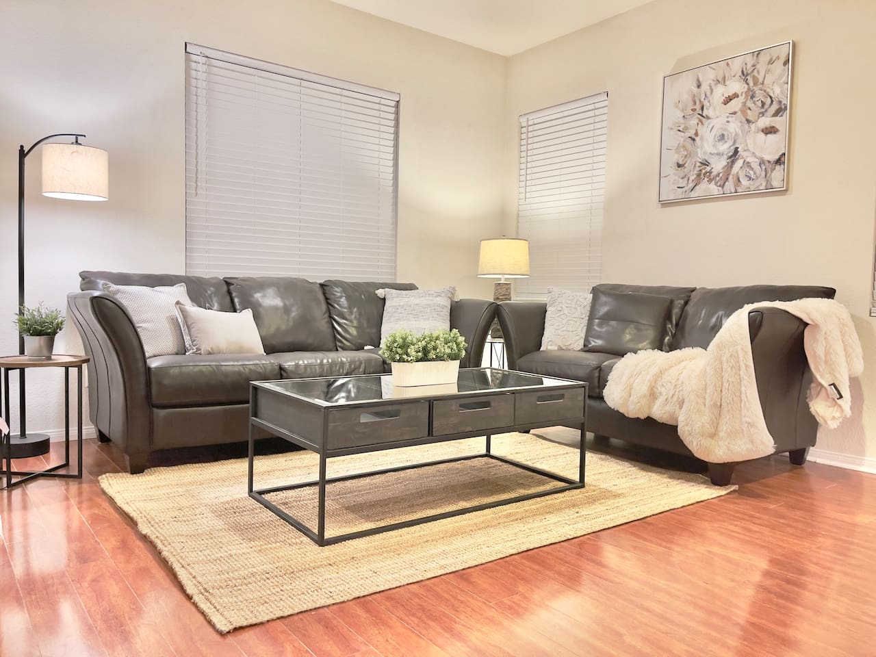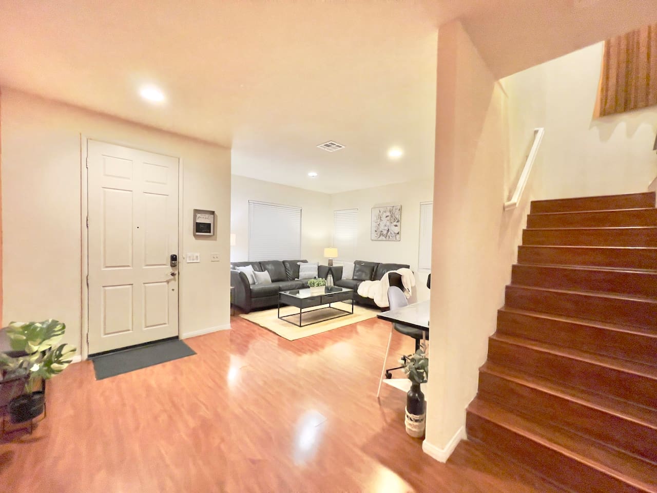 Enjoy a comfortable stay in a well-furnished, centrally located home with private rooms, modern amenities, high-speed Wi-Fi, shared spaces, and discounts for long-term guests. 🏠 Your Room ◉ Spacious master bedroom (600+ sf) with secure key lock ◉ Private living room, dinning room, large walk-in closet in suite ◉ Ensuite bathroom with separate, toilet and shower ◉ Professionally cleaned with fresh linens and towels provided ◉ Central AC/heating set to maintain a comfortable 68-75°F ◉ Professional in-stay cleaning available upon request ($20 per clean) 🔑 Check-in & House Policies ◉ Convenient self check-in after 3 pm, with instructions sent 2 days prior ◉ Quiet hours from 10 pm to 8 am (earplugs recommended for light sleepers) ◉ Common space guidelines: respect quiet hours, clean up after yourself, keep your dry goods in your own assigned cabinet space, label any perishable food in the fridge with your name and date (expired items removed periodically) 📶 Connectivity & Entertainment ◉ 450+ Mbps high-speed Wi-Fi ◉ 4K smart TV and cozy fireplace in the living room ◉ Spectrum cable TV access via Spectrum streaming app 🍽️ Shared Spaces & Kitchen ◉ Fully stocked kitchen with new appliances and mid-century modern furnishings in common areas ◉ Bathrooms stocked with essentials: toilet paper, shower gel, shampoo, conditioner, and hairdryer ◉ Iron and ironing board available in the upstairs hallway closet 🚗 Outdoor & Parking ◉ Covered patio with dining and seating area surrounded by fig and plum trees ◉ Free parking on street and driveway (first come, first served) ◉ Ample parking available on Ave K 12 (no permit required); avoid parking in the cul-de-sac to ensure space for neighbors 💵 Discounts & Long-Term Stays ◉ Discounted rates available for long-term stays of one month or more