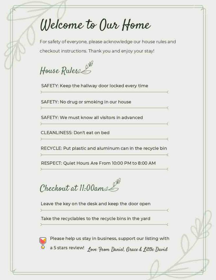 This room is right next to the entrance, so it might be a bit noisy. If you are light sleeper, we offers 33dB disposable foam earplugs. We use Nest thermostat to automatically set the temperature between 68 - 75 Fahrenheit for our entire house (AC/Heat). Note: the vent is located on the hallway. Feel free to let the air in sometimes. If this room get too warm or too cold, please use the floor fan or space heater in the room help regulate the temperature. Due to we have toddlers around the house, we offer 2 pairs of disposable ear plug for each room for anyone who are light sleepers. The shower can drain slowly sometimes. If it is a problem, please let us know. NOTE: We are currently adding a tiny guest house (160 sf) at the back of the property (you won't see it till you are in the courtyard), so we may have to move some materials through the courtyard between 9a-5p during the week. Sorry for any potential inconvenience we cause, but we will do our best to keep the common area clean and minimize any interruptions.