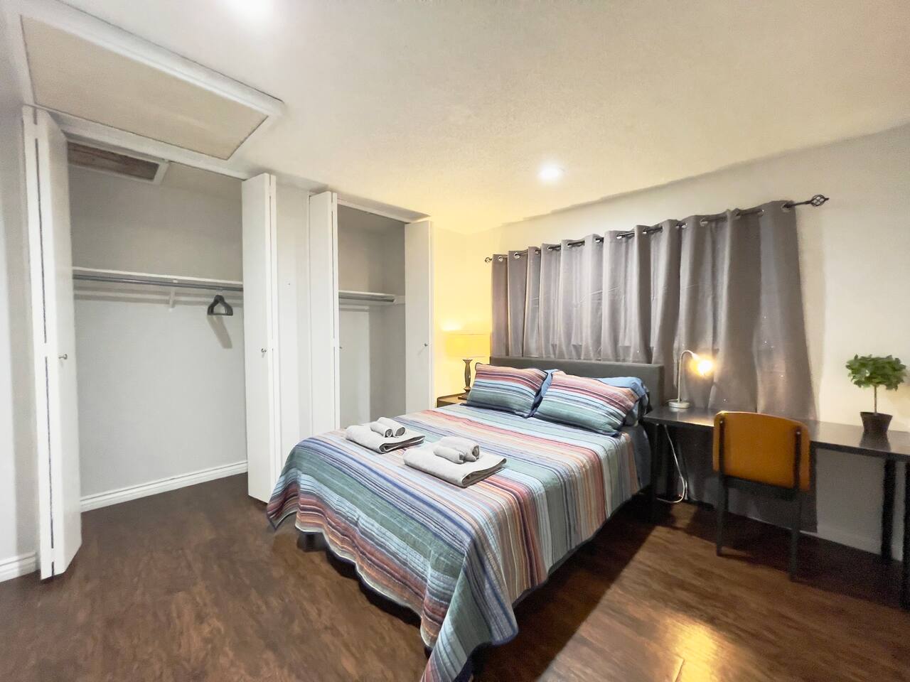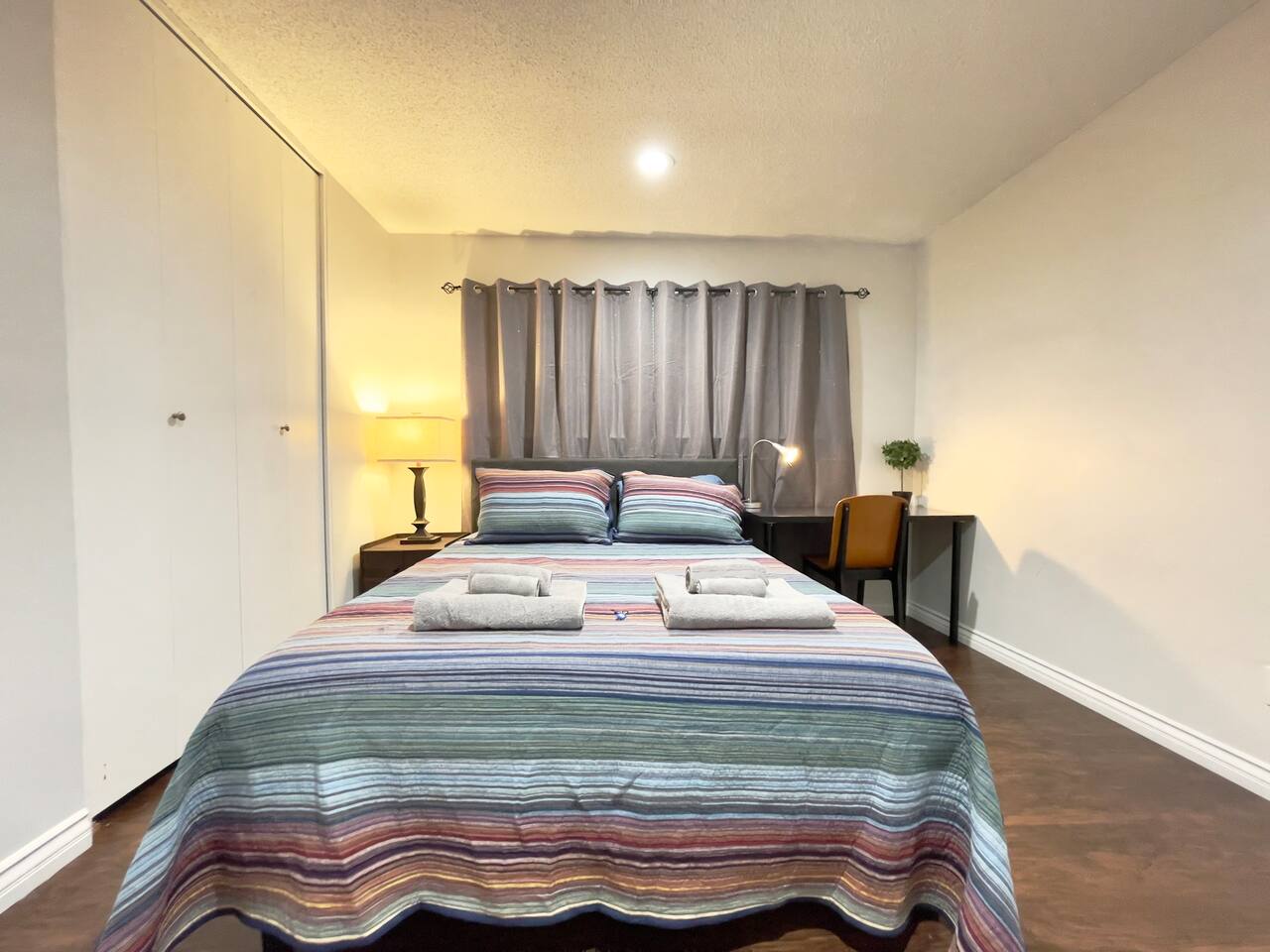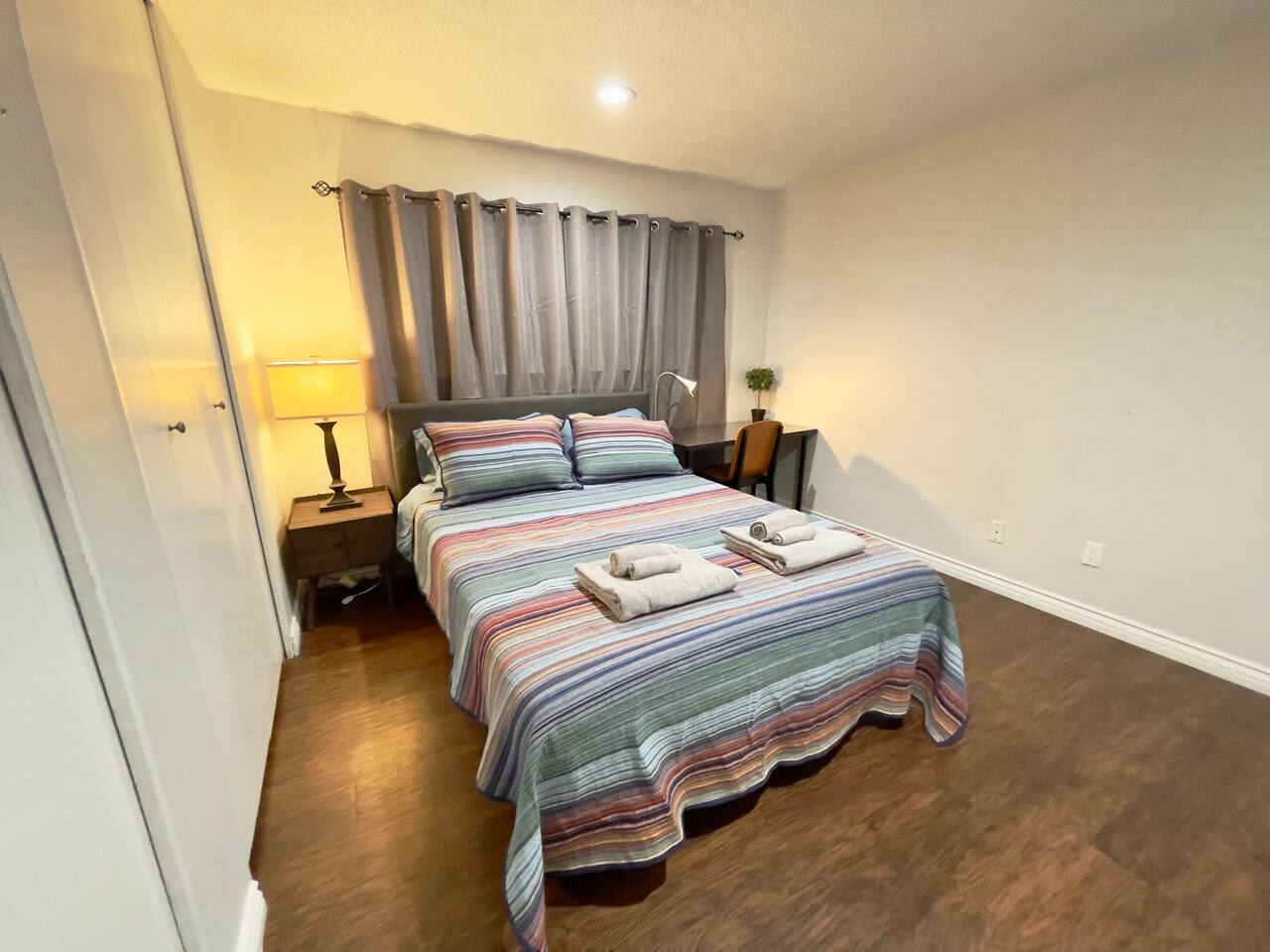 COVID SAFETY: We will provide hand soap and sanitizer in the bathroom. Please let us know if we runs out of hand soap or sanitizer, we can refill it right away. Your room is located on the 1st floor with a comfortable memory foam queen bed with window, computer desk with lamp, huge closet, a storage unit and your own mini kitchenette (fridge, microwave and a little snack bar with coffee, tea), etc. You will be sharing 2 bathroom mainly with guests from other private room. We will have hair dryer, iron and iron board available in the bathroom. Feel free to use it and put it back after finish using them. At this time we do not allow access to the kitchen and laundry (it's our on site manager's unit), but please feel free to get water from the sink (water filter & electric kettle are included in the room). You will be able to self check-in, but please confirm your reservation and checkin instruction beforehand, especially when you plan to checkin really late - we might be at sleep. To ensure we have a safe and secure place for everyone staying with us. Please keep the door locked at all times. The property is equipped with video surveillance 24/7 in the common area. Make sure to put down the correct number of guest who will be staying with you in the reservation and informed us through Airbnb app who will be visiting you during your stay in advanced. To ensure safety for all of our guests, any unsolicited visitors will be considered trespassing, thanks for your understanding!