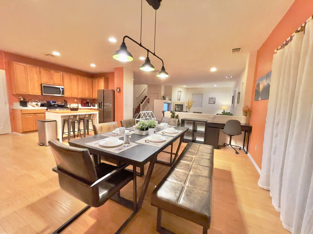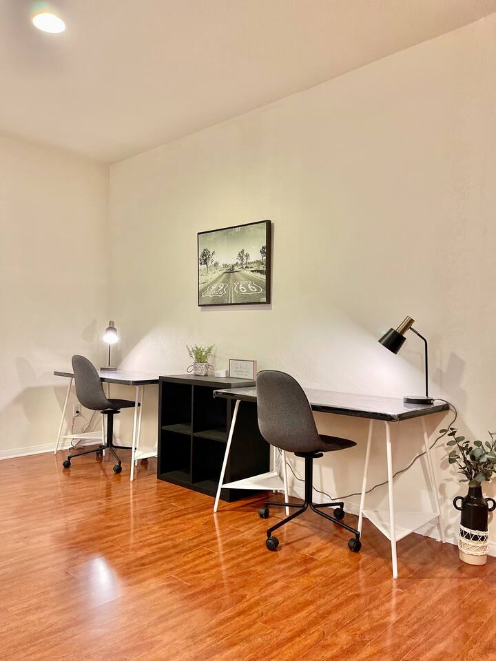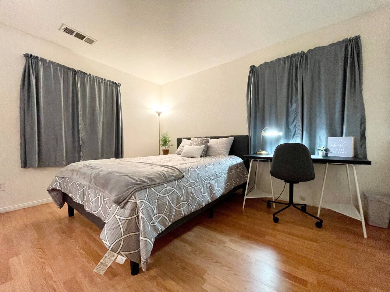 Enjoy a comfortable stay in a well-furnished, centrally located home with private rooms, modern amenities, high-speed Wi-Fi, shared spaces, and discounts for long-term guests. 🏠 Your Room ◉ Private bedroom with secure key lock ◉ Big closet space ◉ 3 shared bathrooms (1 downstairs, 2 upstairs) ◉ Professionally cleaned with fresh linens and towels provided ◉ Central AC/heating set to maintain a comfortable 68-75°F ◉ Professional in-stay cleaning available upon request ($20 per clean) 🔑 Check-in & House Policies ◉ Convenient self check-in after 3 pm, with instructions sent 2 days prior ◉ Quiet hours from 10 pm to 8 am (earplugs recommended for light sleepers) ◉ Common space guidelines: respect quiet hours, clean up after yourself, keep your dry goods in your own assigned cabinet space, label any perishable food in the fridge with your name and date (expired items removed periodically) 📶 Connectivity & Entertainment ◉ 450+ Mbps high-speed Wi-Fi ◉ 4K smart TV and cozy fireplace in the living room ◉ Spectrum cable TV access via Spectrum streaming app 🍽️ Shared Spaces & Kitchen ◉ Fully stocked kitchen with new appliances and mid-century modern furnishings in common areas ◉ Bathrooms stocked with essentials: toilet paper, shower gel, shampoo, conditioner, and hairdryer ◉ Iron and ironing board available in the upstairs hallway closet 🚗 Outdoor & Parking ◉ Covered patio with dining and seating area surrounded by fig and plum trees ◉ Free parking on street and driveway (first come, first served) ◉ Ample parking available on Ave K 12 (no permit required); avoid parking in the cul-de-sac to ensure space for neighbors 💵 Discounts & Long-Term Stays ◉ Discounted rates available for long-term stays of one month or more
