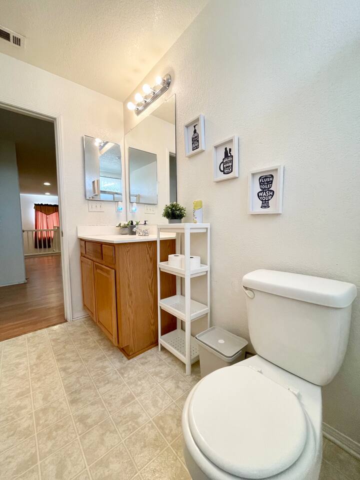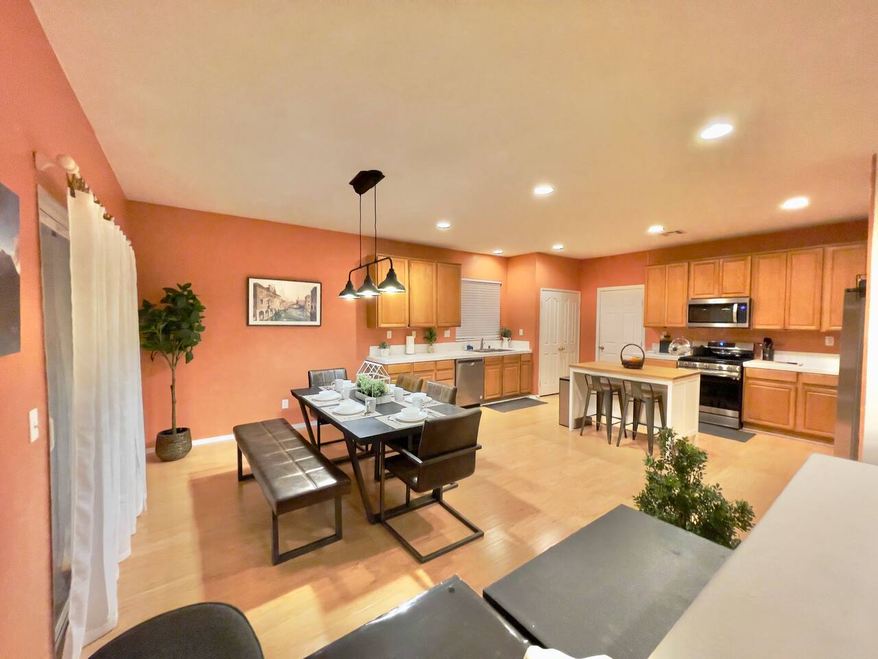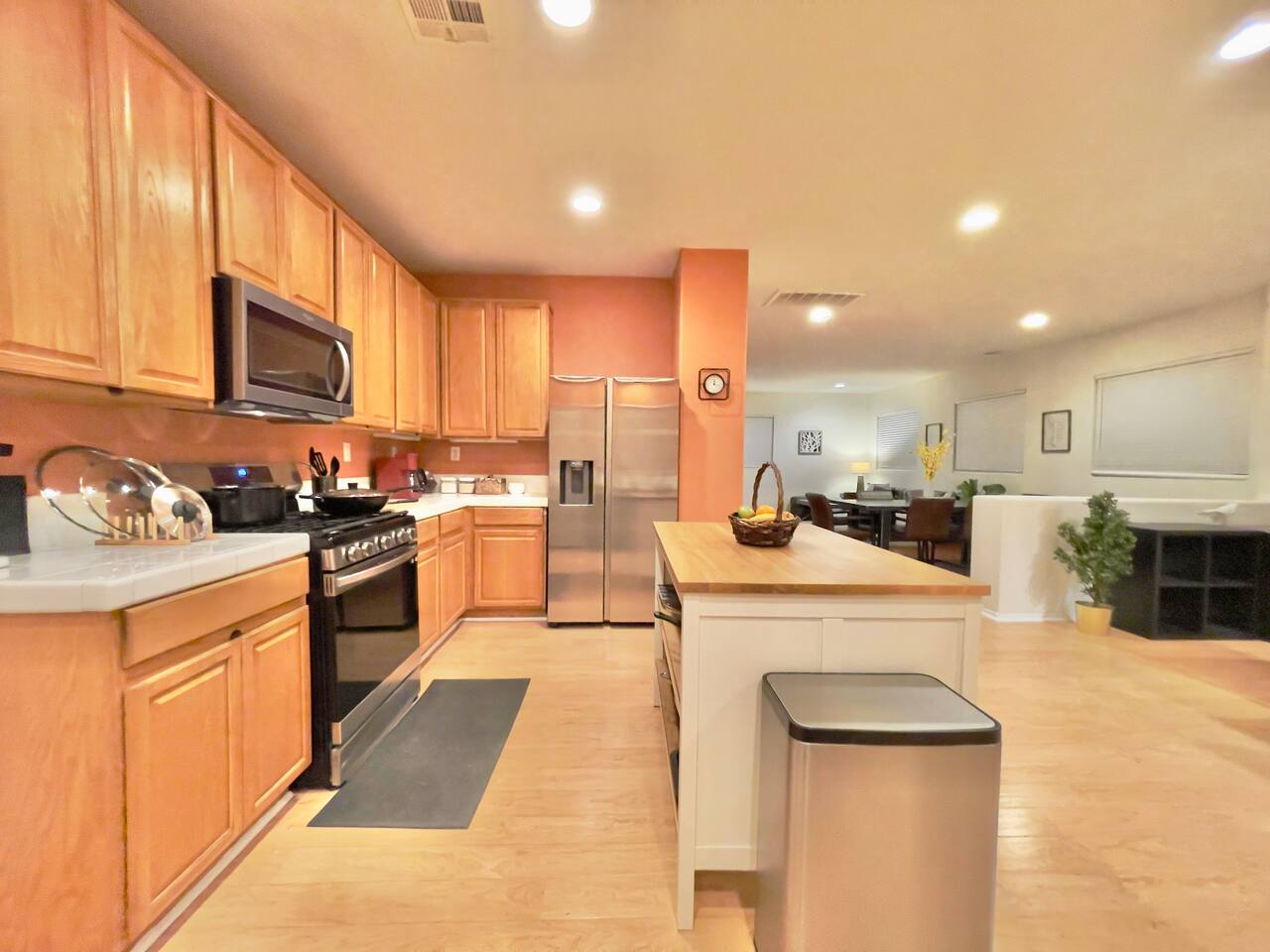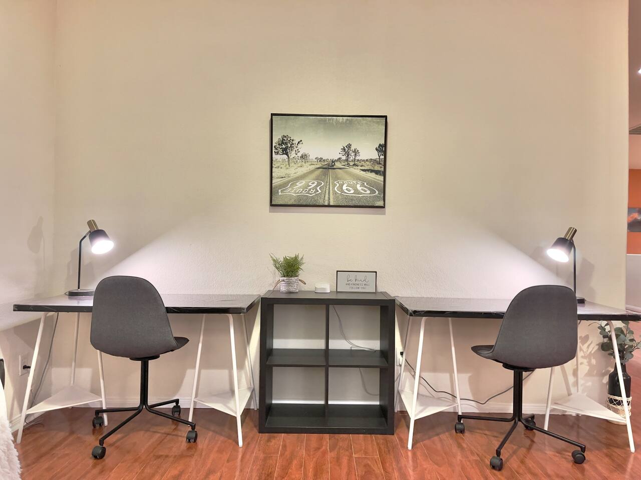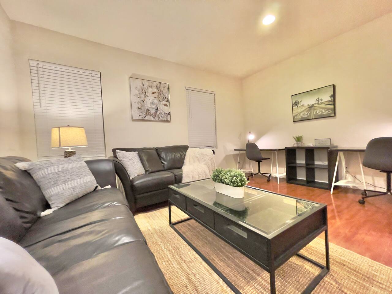 Enjoy a comfortable stay in a well-furnished, centrally located home with private rooms, modern amenities, high-speed Wi-Fi, shared spaces, and discounts for long-term guests. 🏠 Your Room ◉ Private bedroom with secure key lock ◉ Private wet bar, wardrobe in the room ◉ 3 shared bathrooms (1 downstairs, 2 upstairs) ◉ Professionally cleaned with fresh linens and towels provided ◉ Central AC/heating set to maintain a comfortable 68-75°F ◉ Professional in-stay cleaning available upon request ($20 per clean) 🔑 Check-in & House Policies ◉ Convenient self check-in after 3 pm, with instructions sent 2 days prior ◉ Quiet hours from 10 pm to 8 am (earplugs recommended for light sleepers) ◉ Common space guidelines: respect quiet hours, clean up after yourself, keep your dry goods in your own assigned cabinet space, label any perishable food in the fridge with your name and date (expired items removed periodically) 📶 Connectivity & Entertainment ◉ 450+ Mbps high-speed Wi-Fi ◉ 4K smart TV and cozy fireplace in the living room ◉ Spectrum cable TV access via Spectrum streaming app 🍽️ Shared Spaces & Kitchen ◉ Fully stocked kitchen with new appliances and mid-century modern furnishings in common areas ◉ Bathrooms stocked with essentials: toilet paper, shower gel, shampoo, conditioner, and hairdryer ◉ Iron and ironing board available in the upstairs hallway closet 🚗 Outdoor & Parking ◉ Covered patio with dining and seating area surrounded by fig and plum trees ◉ Free parking on street and driveway (first come, first served) ◉ Ample parking available on Ave K 12 (no permit required); avoid parking in the cul-de-sac to ensure space for neighbors 💵 Discounts & Long-Term Stays ◉ Discounted rates available for long-term stays of one month or more