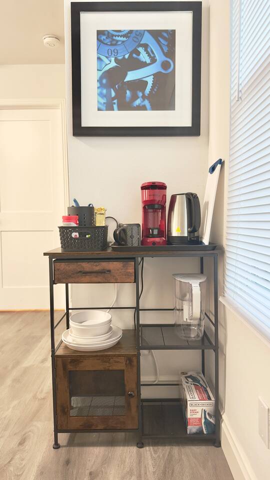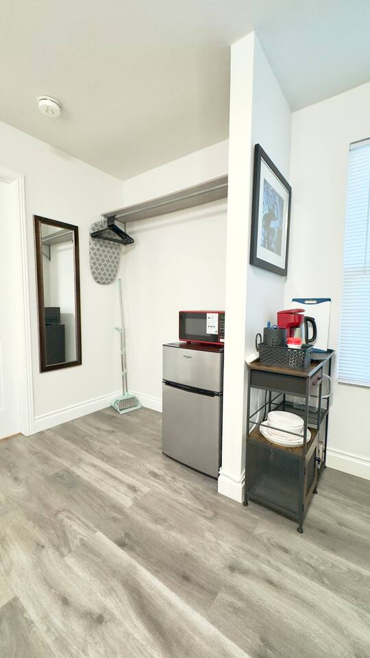 Stay in a beautifully remodeled guest suite in the heart of downtown San Jose. This suite blends historic charm with modern design for a stylish and comfortable stay. Your suite includes: ◉ Kitchenette with coffee & tea bar ◉ Bistro dinette with bar seating ◉ Private mini-split AC/heater ◉ Cozy living room with reclining sofa ◉ Washer and dryer access (shared) ◉ Executive desk ◉ Newly remodeled bathroom ◉ Queen bed with memory foam pillows ◉ Smart TV and high-speed mesh WiFi Property details: The main house hosts a boutique architect firm, bringing creative energy during business hours while evenings remain quiet. Parking: Driveway reserved for the owner (available Monday nights for street cleaning). One first-come, first-served spot beside the driveway. Additional street parking nearby Amenities & check-in: Fresh linens, toiletries, and essentials provided. Professionally cleaned before each stay. Self check-in via lockbox; late arrivals welcome with advance notice. Security: Exterior monitored by 24/7 cameras. Please ensure your reservation reflects the correct number of guests.