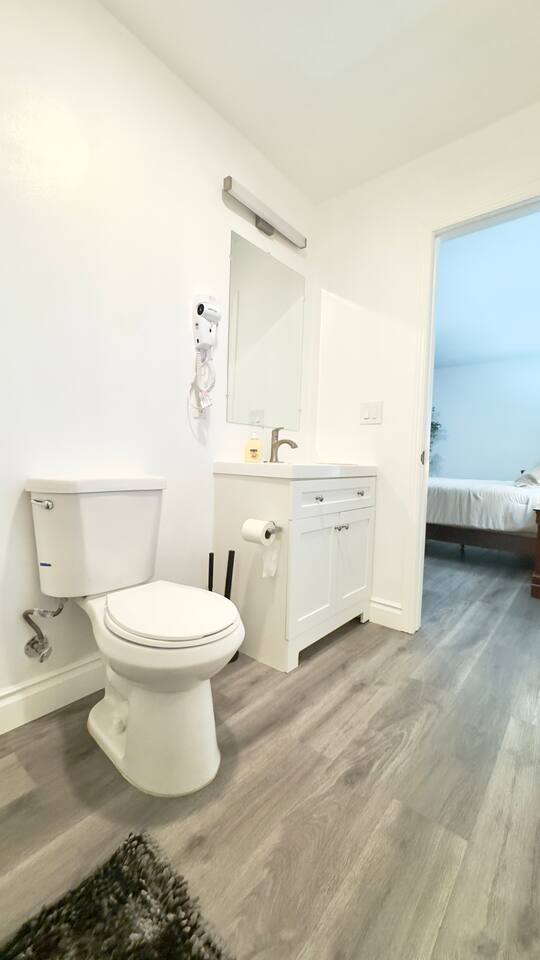 Newly remodeled guest suite, only steps away from SJSU. The main house hosts a boutique architect firm, adding creative energy by day while evenings stay quiet. This retreat offers modern comforts in a prime Silicon Valley location. With quick access to I-280, Hwy 87, and Hwy 101, you’re minutes from Caltrain, SJC Airport, the Convention Center, SAP Center, Levi’s Stadium, and downtown San Jose. Ideal for business or leisure, the suite blends style and convenience for a comfortable stay.