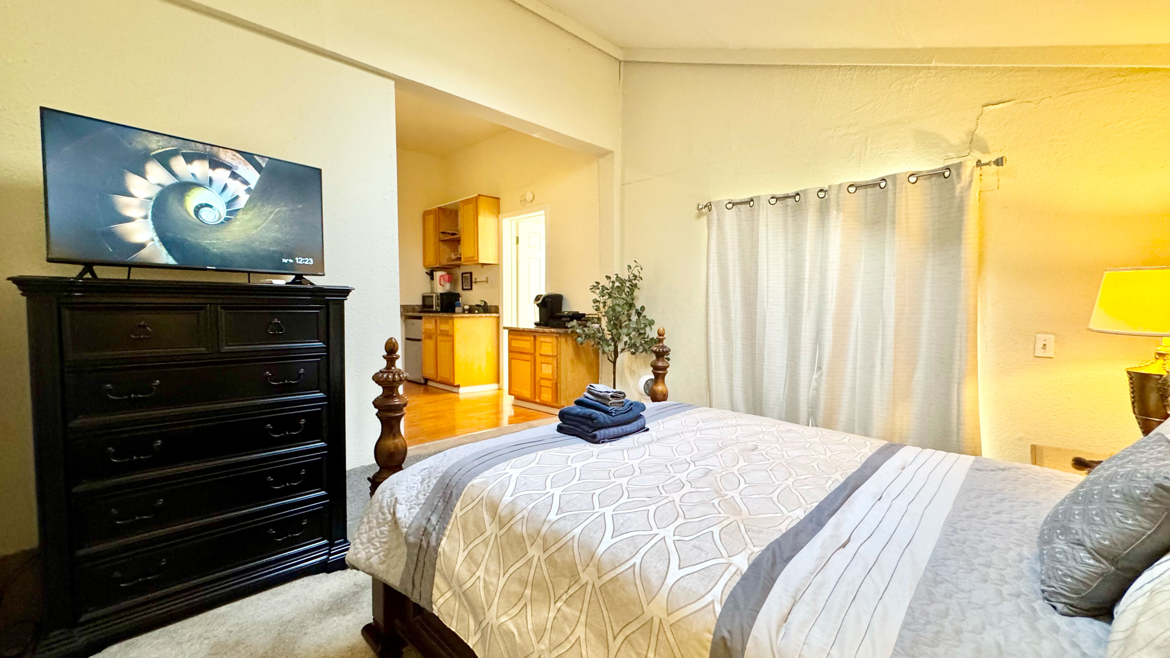 Centrally located in the heart of Silicon Valley, just a short walk to Tamien Caltrain and light rail! Enjoy easy access to I-280, Hwy 87, Downtown San Jose, Willow Glen, and Santana Row. This private garden suite features a queen bed, kitchenette, fast WiFi, and smart TV—perfect for business or extended stays. Professionally cleaned, self-check-in, and a calm, secure space to unwind after work or travel.